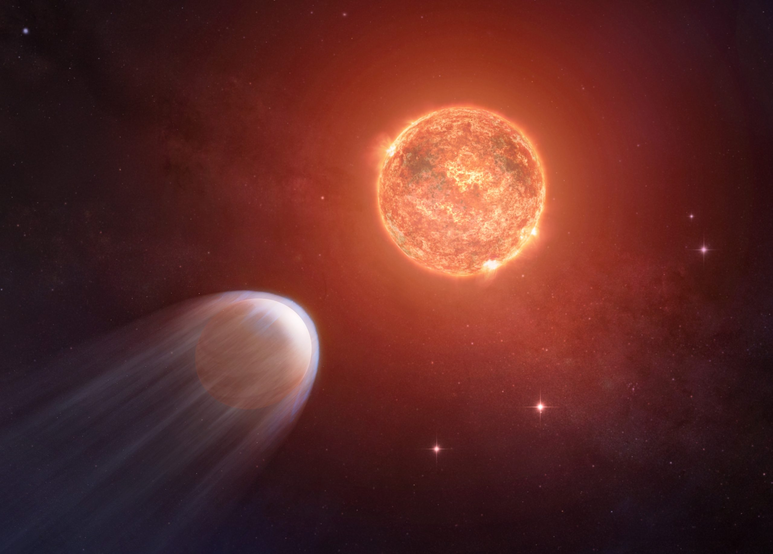 Rappresentazione artistica di Toi 5800 b, l’esopianeta più eccentrico mai osservato all’interno del cosiddetto deserto dei Nettuniani caldi. Crediti: Inaf