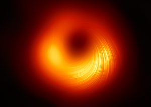 mmagine del buco nero al centro della galassia M87 in luce polarizzata. Crediti: The Eht Collaboration