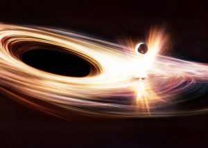 Illustrazione del disco di accrescimento attorno al buco nero massiccio Ansky che interagisce con un piccolo oggetto celeste. Crediti: Esa